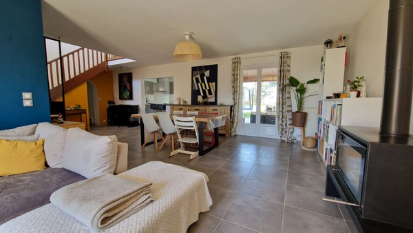 BAISSE DE PRIX!!! Votre conseiller Noovimo 06 06 73 67 81 stoublanc@noovimo.fr vous présente cette jolie maison aux très beaux volumes (135 m2 habitable + 30 m2 garage attenant) idéale pour une famille souhaitant profiter des espaces intérieurs et de son grand jardin arboré (arbres fruitiers, cèdres...) Située au calme, à pieds des bords de Loire, vous profiterez d'un très bon emplacement vous permettant un accès rapide à la gare de Thouaré ou à l'axe NANTES/CHOLET. Vous découvrirez au RDC : belle pièce de vie d'environ 45 m2 comprenant salon et séjour avec poêle à bois, cuisine A/E ouverte d'environ 12 m2, dégagement desservant 2 chambres (11,5 m2 et 12 m2), SDB (Baignoire, douche italienne, meuble 2 vasques), WC, buanderie et grand garage attenant. A l'étage, vous bénéfécierez de 2 belles chambres dont une avec SDE privative (11,50 m2) , d'un bureau / petite chambre (8,22 m2) et d'un second WC. A l'extérieur, vous pourrez stationner plusieurs véhicules, serez charmés par son grand terrain avec piscine, terrasse avec préau, espace potager avec puits. TOUT A L'EGOUT, chauffage FUEL. A DECOUVRIR TRES RAPIDEMENT!!! Honoraires : 3,8 % de 335 000 EUR (prix de vente honoraires exclus). Soit 347 730 EUR honoraires inclus à la charge de l'acquéreur. Votre conseiller Noovimo inscrit au RSAC de NANTES sous le numéro 538 967 654 Nos honoraires sont consultable sur www.noovimo.fr 1 - Annonce rédigée et publiée par un Agent Mandataire -